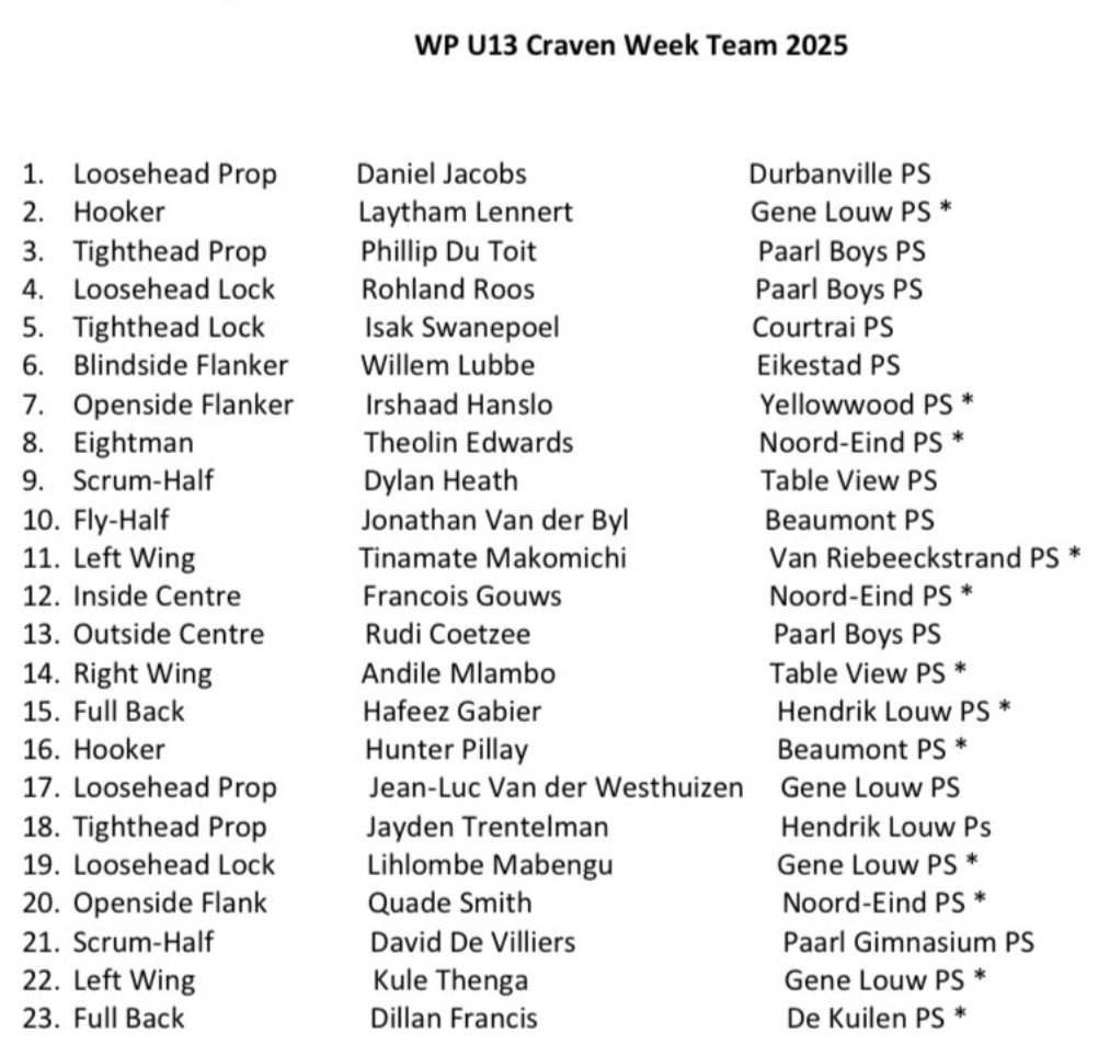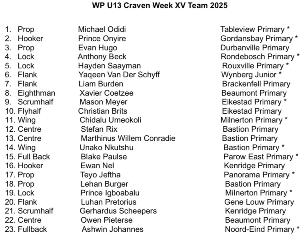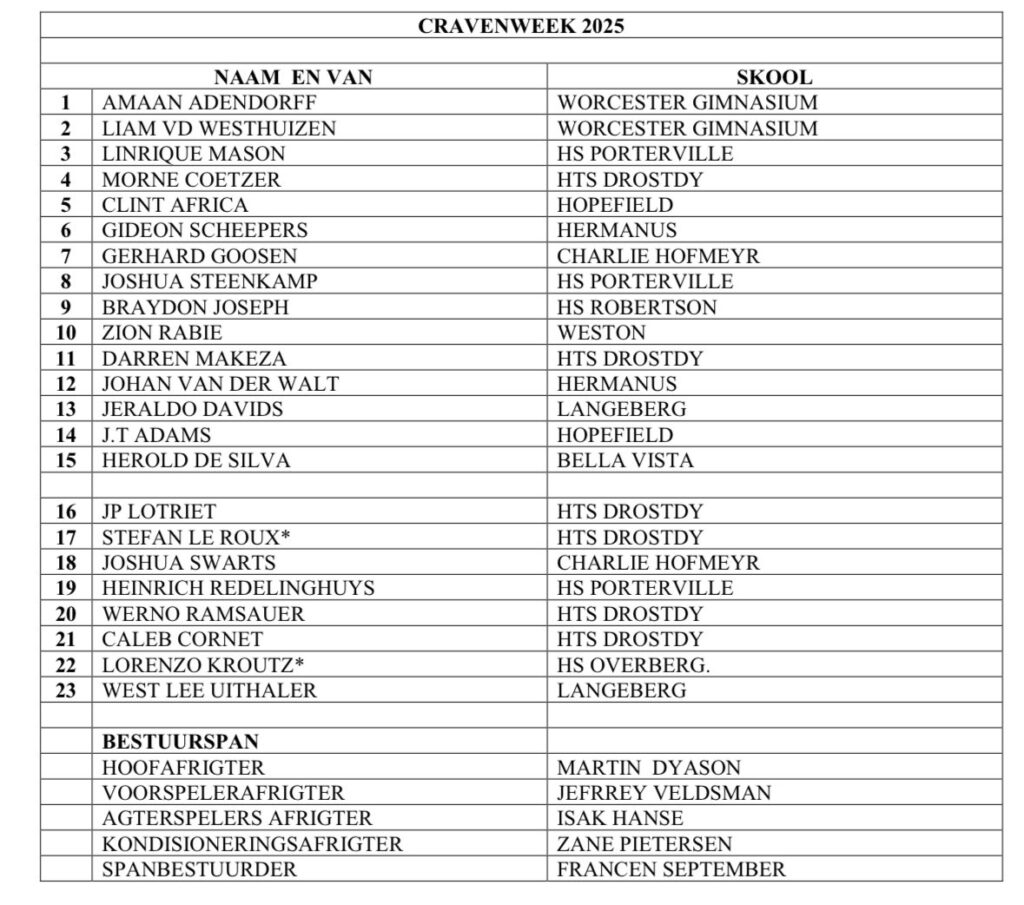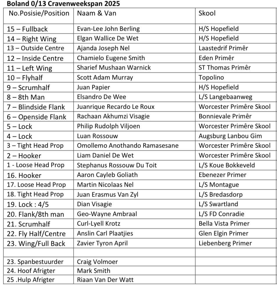 U18 Craven Week – & July – Middelburg High School, Mpumalanga